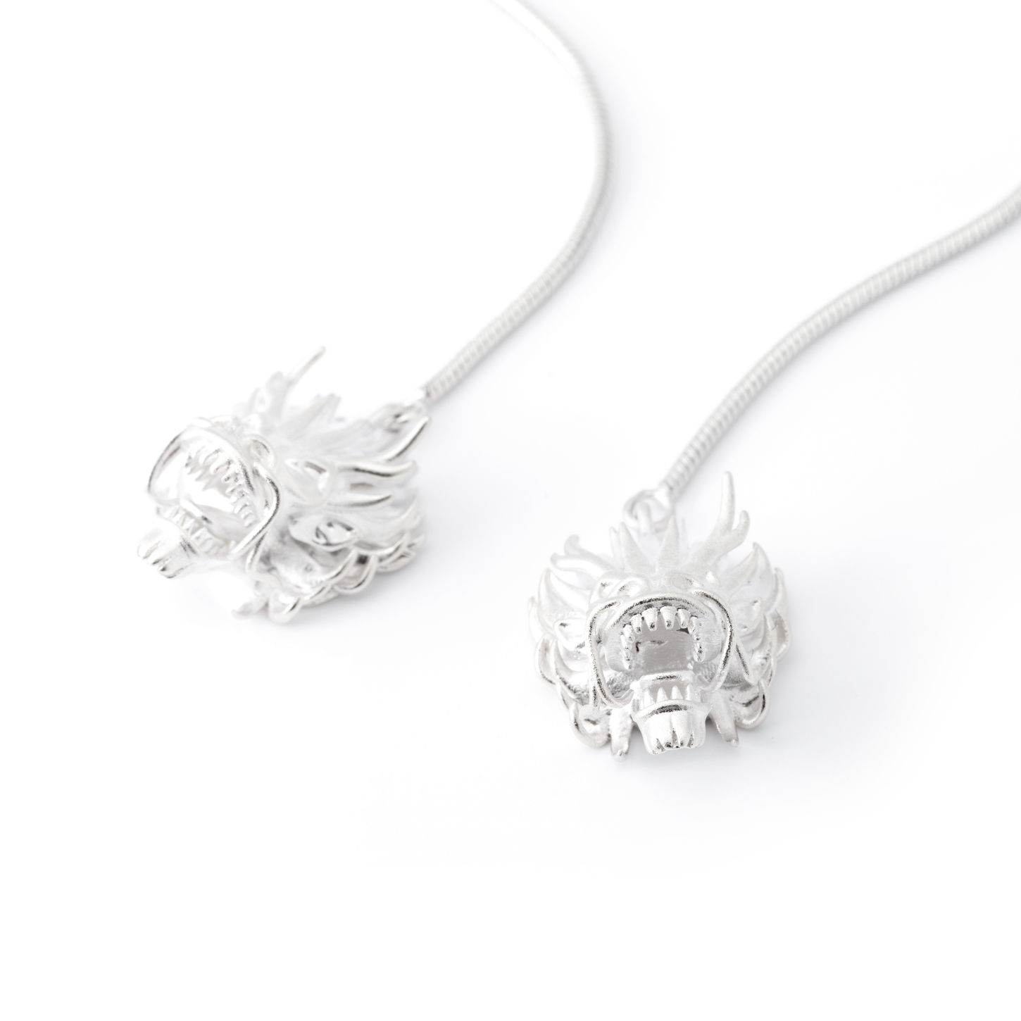 A captivating piece that encircles your neck with enchanting dragon head pendants at each end. The necklace is made from high-quality silver, ensuring durability and a radiant shine that catches the light. The dragon head pendants at each end of the necklace are intricately designed, capturing the majestic essence of these mythical creatures. The back of each dragon head is adorned with 5A green zircon settings, adding a touch of vibrant color and sparkle to the piece.The length of the necklace is adjustable according to your preference, allowing you to find the perfect fit and style. The main chain features a sleek and elegant snake chain design, complementing the overall aesthetic of the necklace.